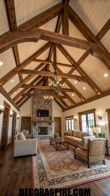 A wooden beam ceiling adds rustic Western character. Exposed beams in dark wood create a cozy atmosphere. They draw the eye upward to maximize space. This feature fits small living rooms well. It adds charm without cluttering the floor. Pair it with neutral furniture for balance. The beams evoke old ranch houses. They feel sturdy and timeless. Add a woven rug for warmth. This design keeps the room open. It feels authentic and inviting. The beams anchor the Western aesthetic.