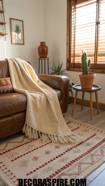A wool throw blanket adds warmth to small Western living rooms. Its soft texture invites relaxation and comfort. Neutral tones like beige or gray fit the aesthetic. This blanket works in compact spaces. It drapes over a sofa without cluttering. Pair it with a wooden coffee table for balance. The wool evokes cozy ranch evenings. It feels rustic yet modern. Add a small pottery vase for charm. This design keeps the room inviting. It feels warm and functional. The blanket enhances the Western vibe.